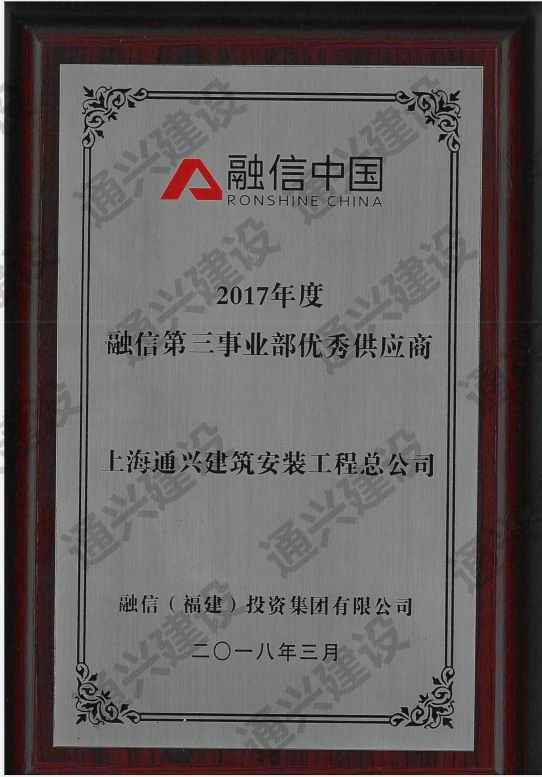 2017年度融信第三事业部优秀供应商